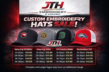 JTH Apparel has over 30 years of Embroidery industry knowledge utilizing some of the most advanced equipment out there. Embroidery is a great service for corporate identity, special events, logos, clothing lines, and uniforms. We use the state-of-the-art embroidery machines. Low minimums & quick turnaround.